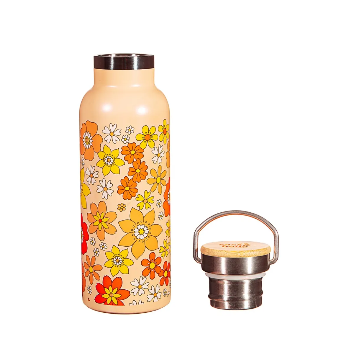 A retro and stylish water bottle, featuring a 70’s floral design, it’s perfect for those who love a vintage vibe, whether you’re on the go or just want to add a touch of style to your day.