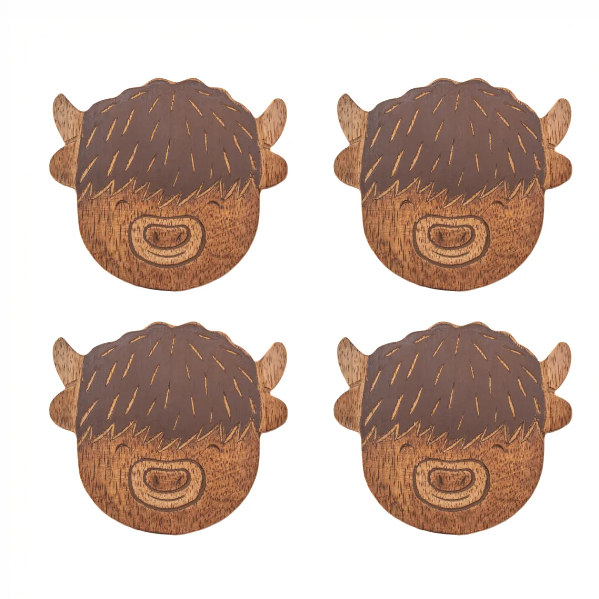 Hot Sass and Belle Highland Cow Wooden Coasters – Set of 4