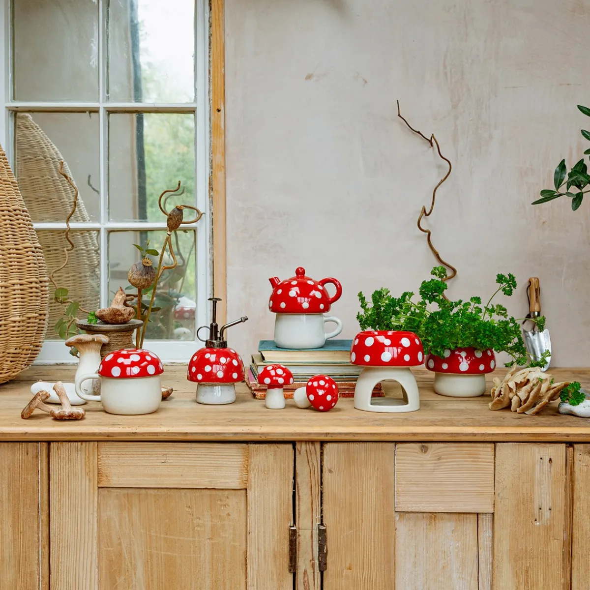 Introducing the Sass & Belle Cottage Garden Mushroom Oil Burner – a charming addition to your home fragrance collection. Made from ceramic and featuring a bright red and white design, this mushroom-shaped oil burner adds a touch of whimsy to any space. The deep dish on top holds your favourite essential oil, while the chamber below holds a tealight candle to infuse your room with beautiful fragrance. Use with essential oils or wax melts to create a soothing ambiance in any room.
