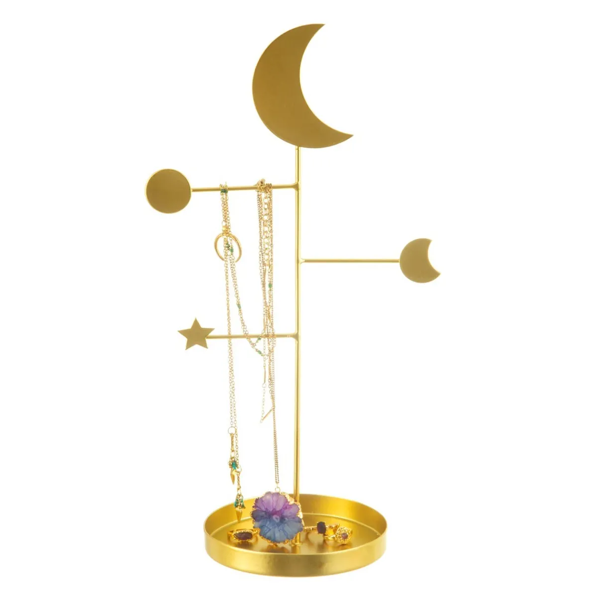 Dreaming of jewels and seeing sparkles? Your shooting star wish comes true with this galaxy gold jewellery stand. Part of our luxe Celestial collection and inspired by the midnight sky, this storage piece features luna shapes and three arms to display your fave necklaces and bracelets, with a dish at the base for pretty rings and trinkets.