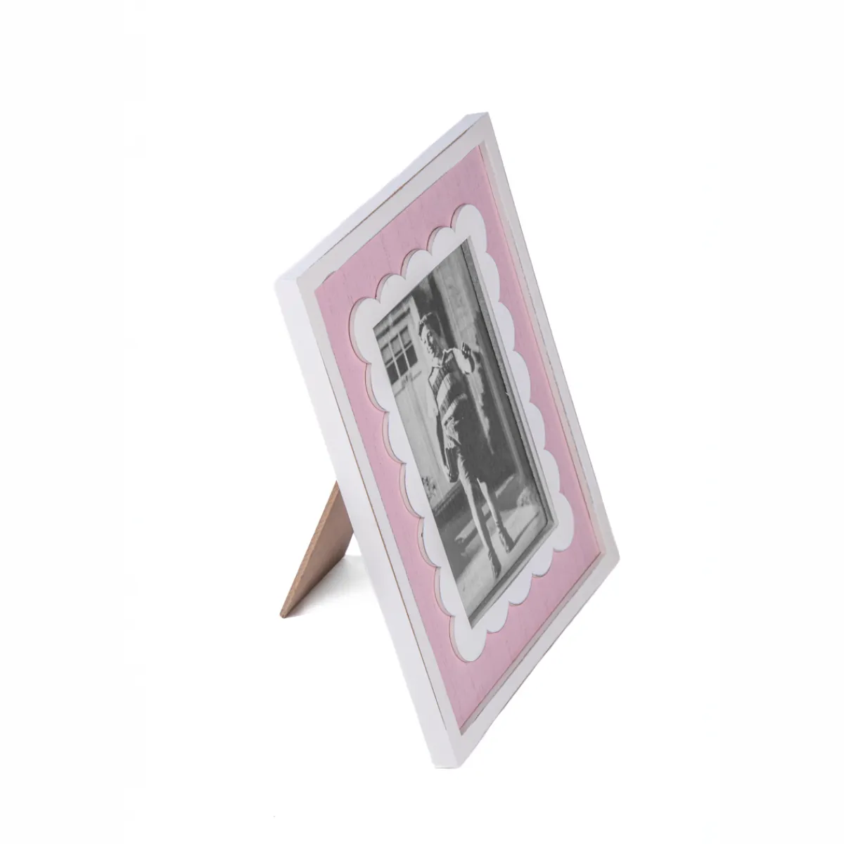 Add a pop of colour to your photos with this Scalloped Photo Frame in Pink. The delicate scalloped edges offer a whimsical touch, making it a perfect home accent for any room.