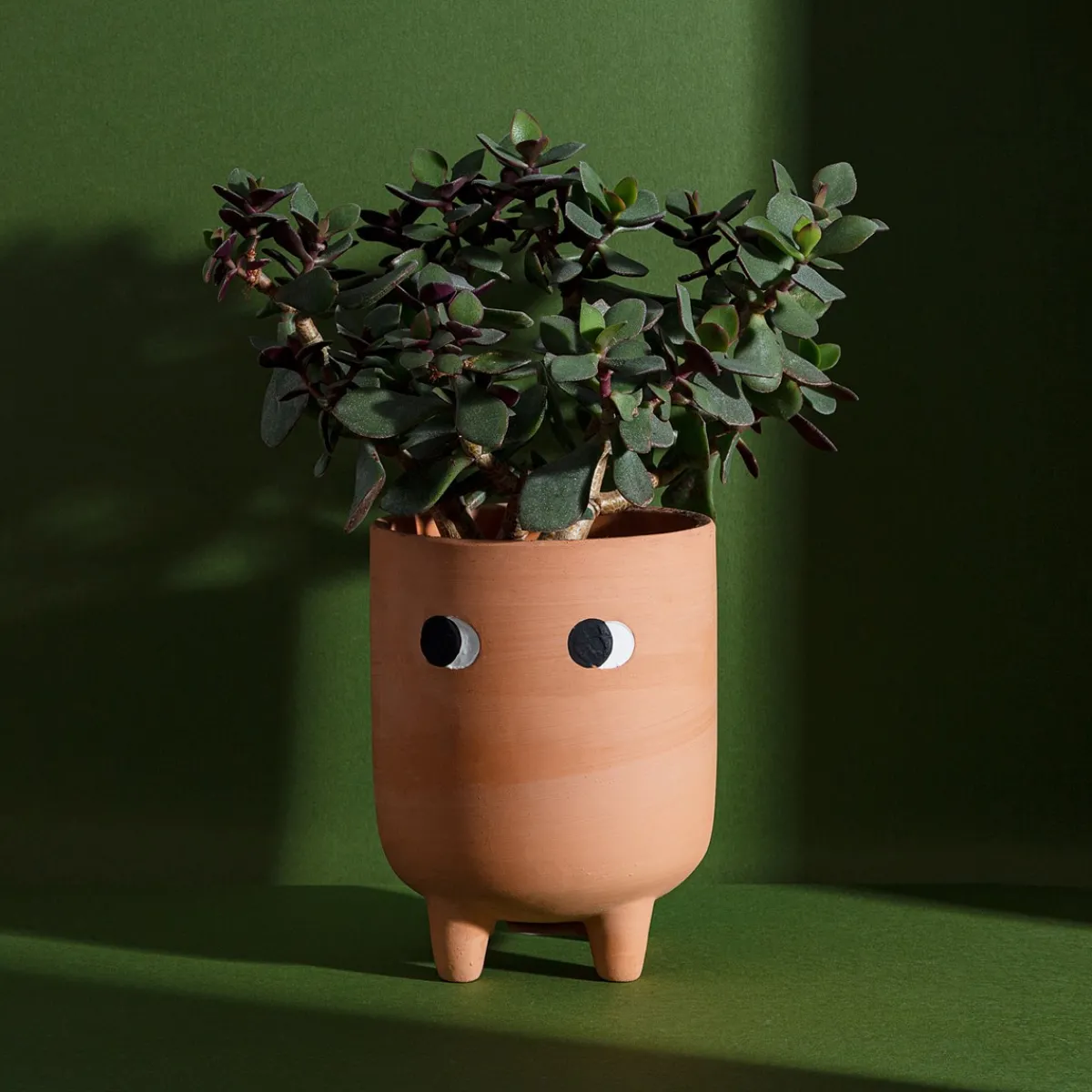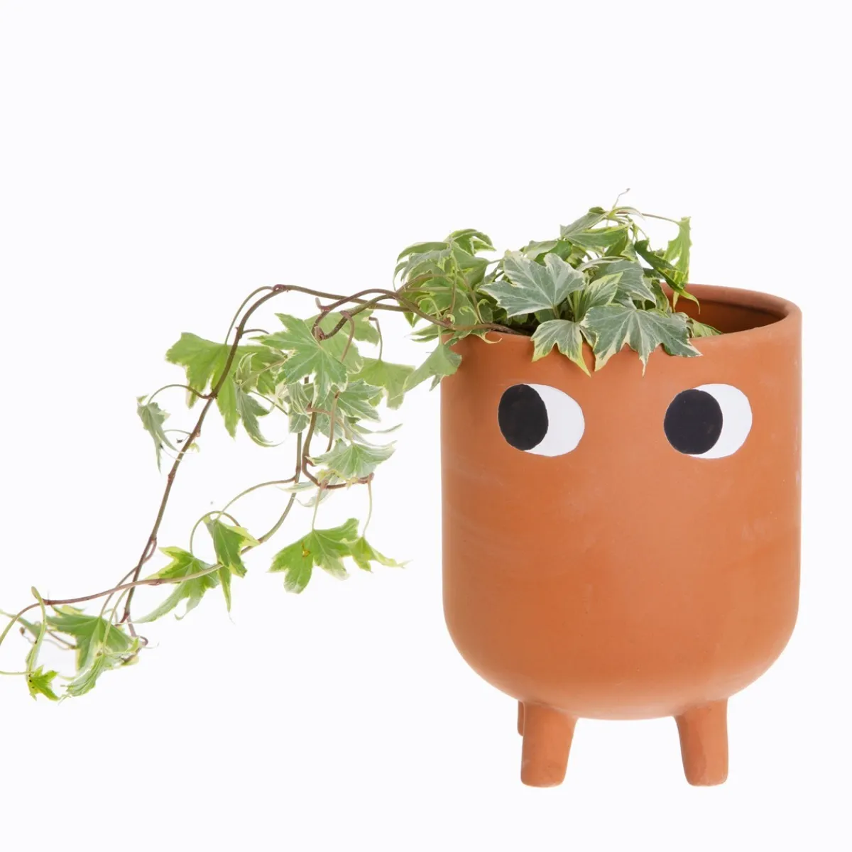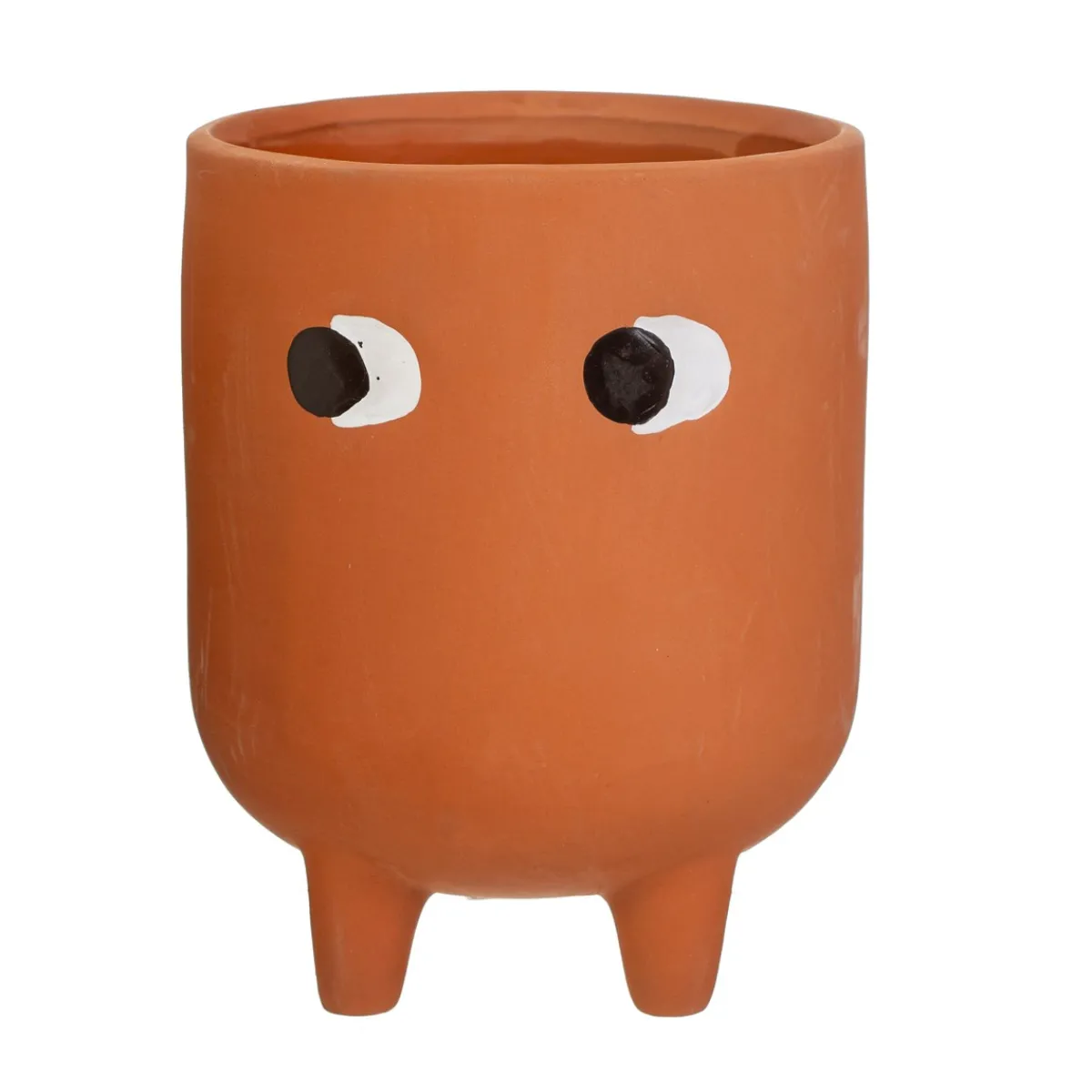 A curiously innocent addition to your plant pal collection. Our leggy planter features a pair of cute pondering eyes on a bohemian terracotta. Its character and charm are sure to create conversations and inspire a natural mood in your home. This product has been hand-finished with a whitewash to enhance the matte look, causing slight variations between each design.